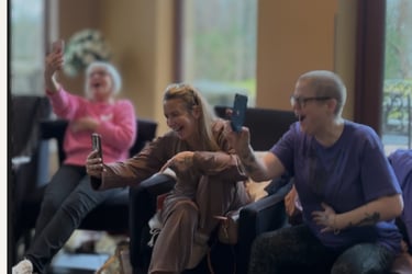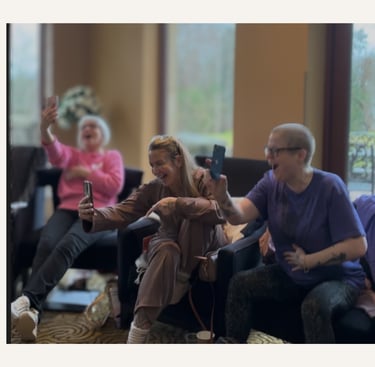 MacLaughter Well sessions are led through laughter yoga — a unique practice that combines intentional laughter with breathwork and simple movement. Laughter is chosen purposefully, not because something is funny, and the body responds in ways that help bring attention into the present moment, ease tension and create shared connection. This embodied approach supports the experience of regulation, presence and ease throughout the cycle.